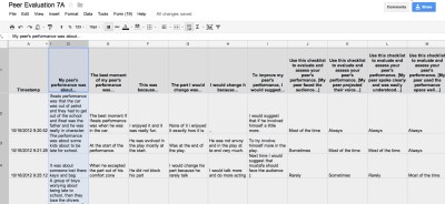 - Combining Google Forms with screen-casting: this can be used for formative assessment of student understanding. I could create a screencast every week for the theoretical material that needs to be covered, and embed it in the class blog, along with an embedded/hyperlinked Google Form to measure student learning. I rely mostly on my iPad to create screencasts, using apps such as ShowMe or ExplainEverything. I have used Google Forms more than once already, and I love this tool. I have used it to collect feedback on a unit of work from students, I have used it to facilitate peer evaluations in my drama classes and I have used it as a worksheet to help in defining slapstick comedy. I can see many more ways of using it and there are lots of ideas out there.