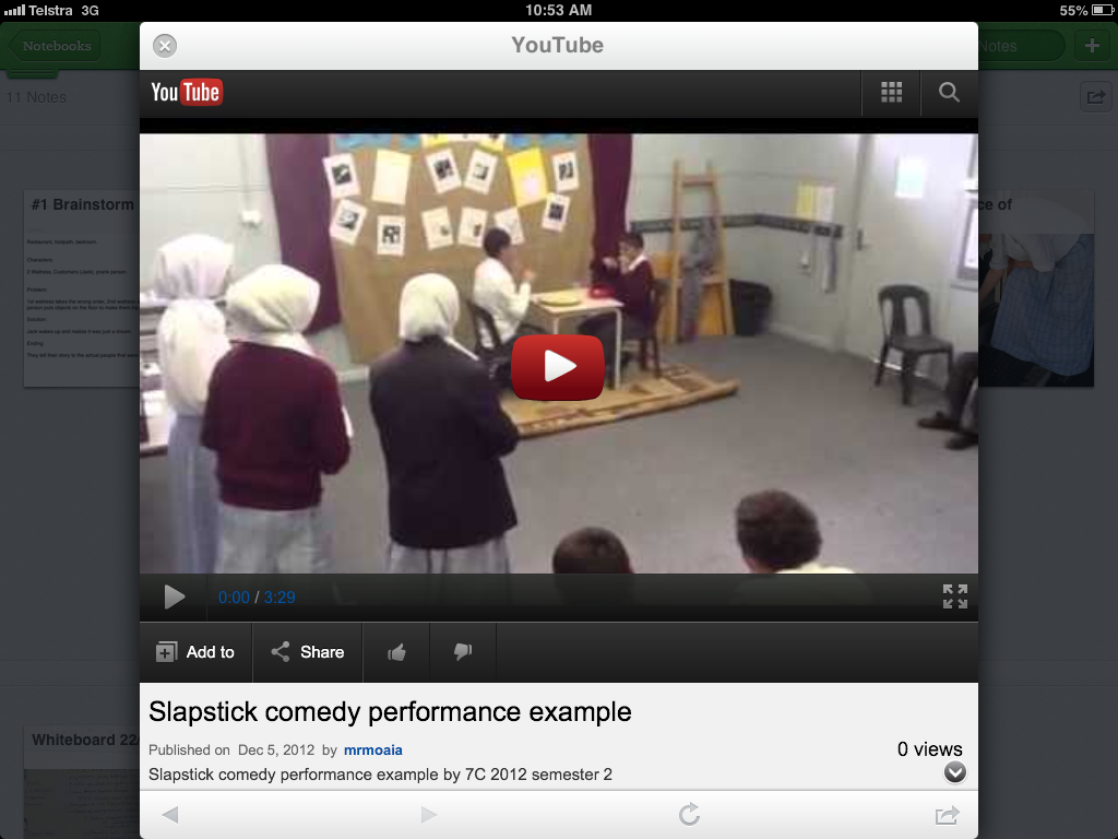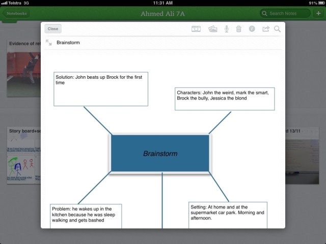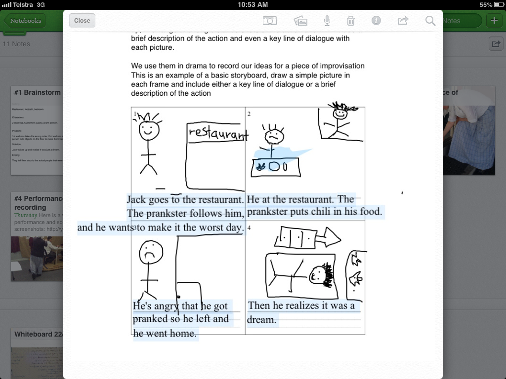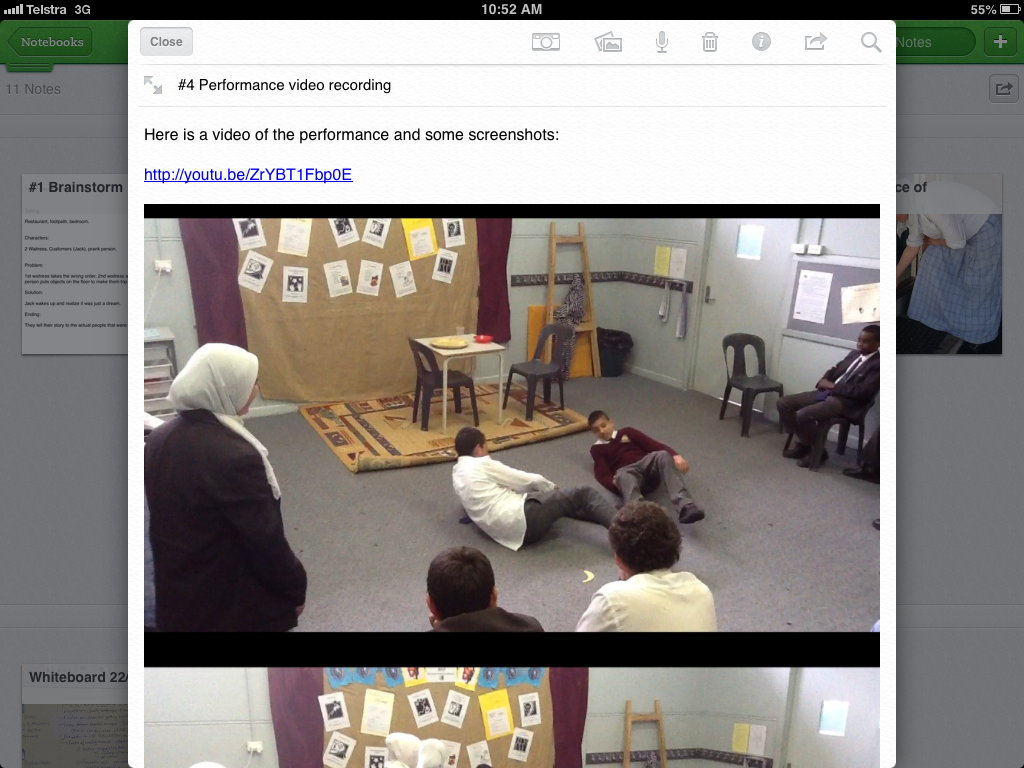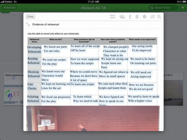 Below you will find a video-tour of one of my year 7 portfolios for this task, followed by some screenshots of evidence attached to the some group portfolios to document every stage in the drama process: brainstorming, preparation (script-writing/story-boarding), rehearsal, performance, reflection & evaluation.